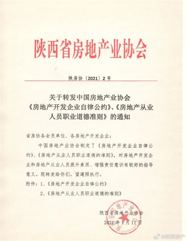陕西房地产业协会发出号召:规范开发企业行为 维护市场秩序 依法诚信经营